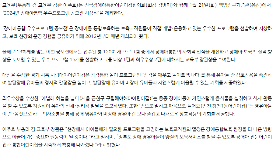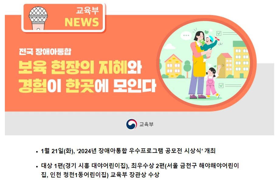 [교육부] 전국 장애아통합 보육 현장의 지혜와 경험이 한곳에 모인다