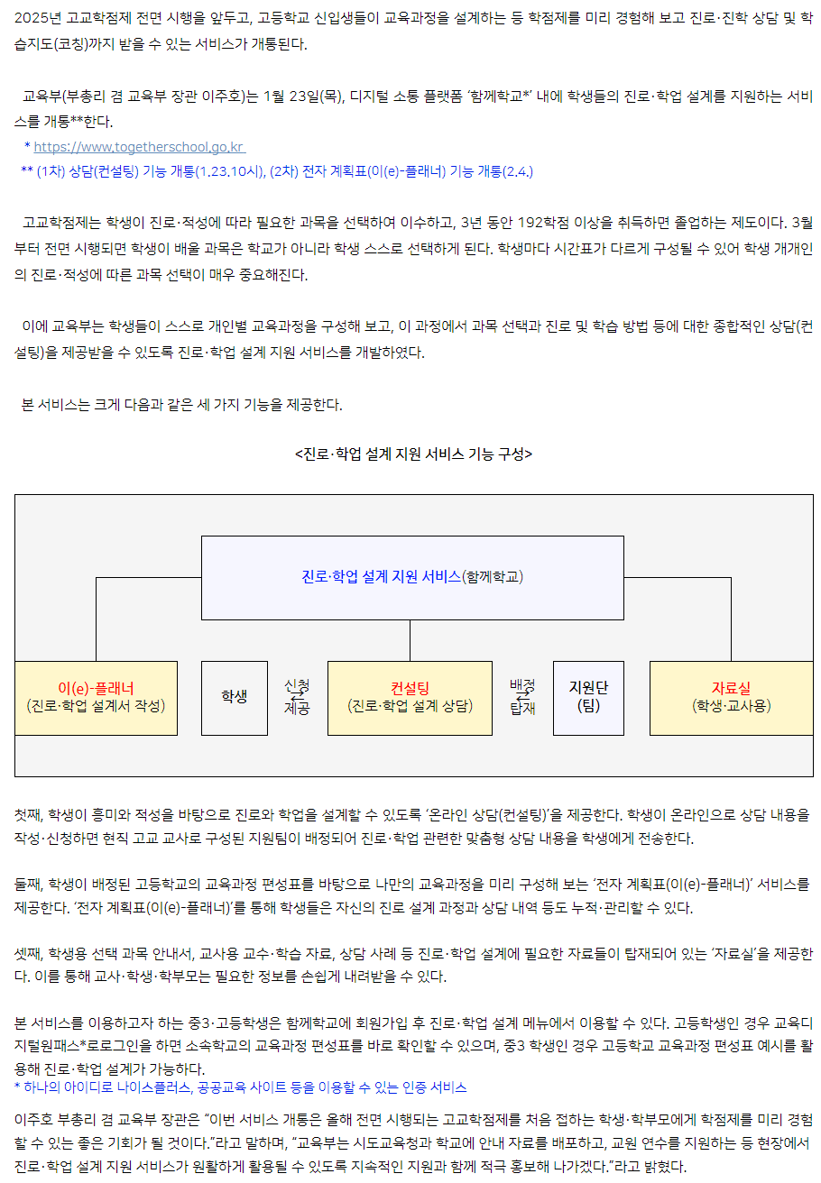 [교육부] 진로·학업 설계 지원 서비스 1월 23일 개통