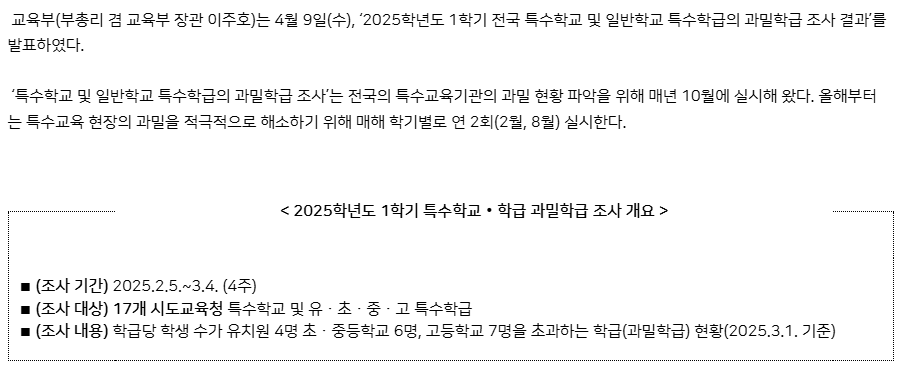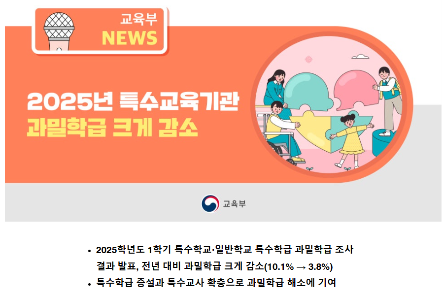 [출처] 2025년 특수교육기관 과밀학급 크게 감소|작성자 교육부