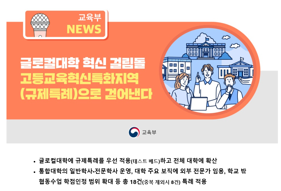 [출처] 글로컬대학 혁신 걸림돌, 고등교육혁신특화지역(규제특례)으로 걷어낸다|작성자 교육부
